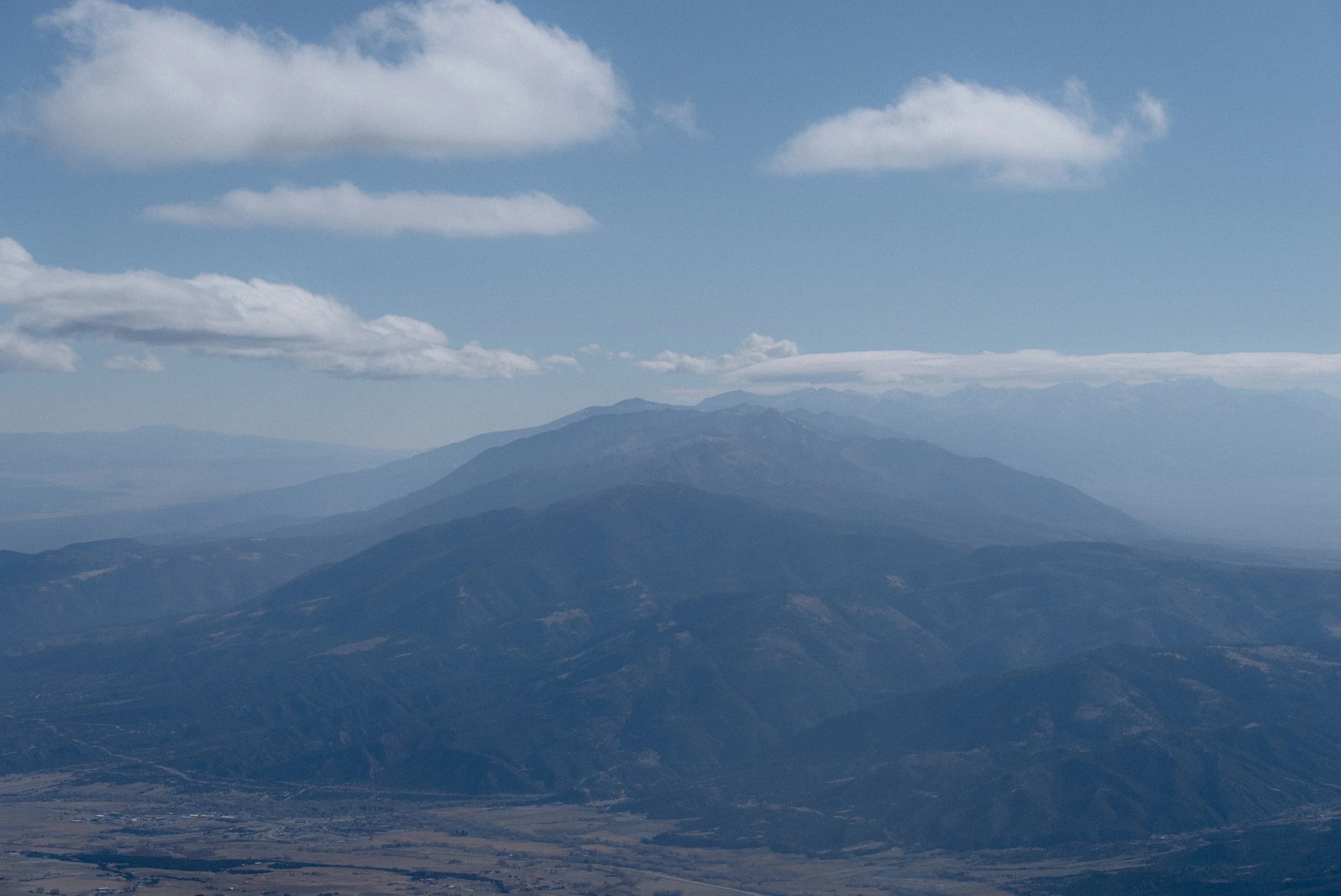 View from the top of Mt. Shavano on 11/16/2025, looking southeast towards Salida, Poncha Springs, The San Luis Valley, the Sangre De Cristo Range, and Mt. Blanca in the distance.